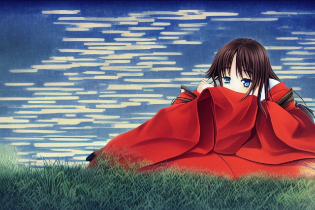 其後,有其他網友改用葛飾北齋的名所繪《富嶽三十六景》另一作品《凱風快晴》來加入美少女元素給 AI 創作,這次改用另一個 AI 「trinart」來嘗試,這次反而將紅色的富士山完完全全的變成了一個和風少女,不過好像跟原作看起來相似度沒有那麼高。
