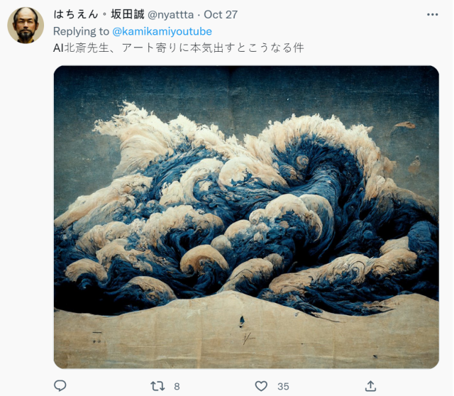 不過也有其他網友用 AI 繪製葛飾北齋的創作,結果變成副模樣 XD。