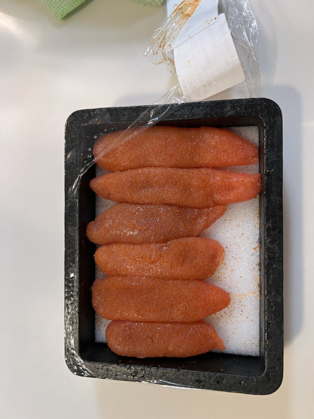 看看這盒「辣味明太子」,原本盒裝看起來沒有什麼奇怪的地方,拆開盒裝後卻發現外面貼的紙條包裝下,底下的明太子居然偷偷的…長短不一,讓推主自己也感到哭笑不得。