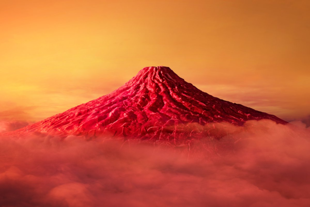 ( 註 : 赤富士是指富士山在清晨日光的照耀下呈現紅色的現象,主要發生於晩夏至初秋之間,日本民間視為一種吉兆。 )