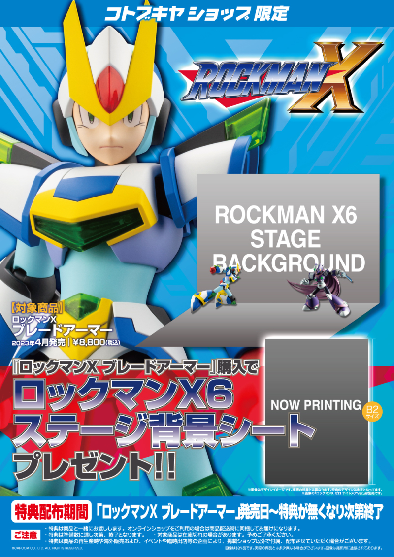 日本模型商壽屋(KOTOBUKIYA)日前發表了出自《洛克人X6》的最新商品「艾克斯聖劍裝甲 1/12比例組裝模型」預計於 2023 年 04 月發售的消息。