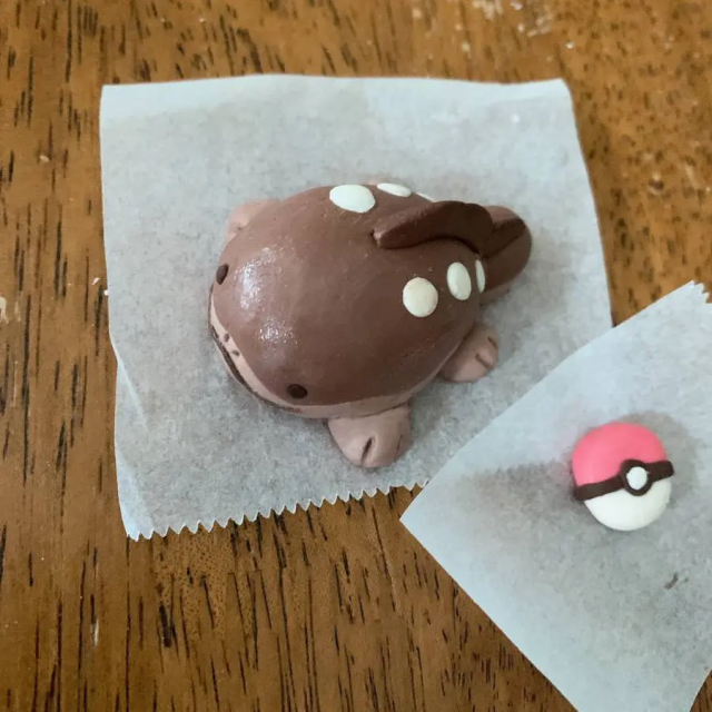 製作的粉絲 poko(@twst_poko) 是一位擅長製作甜點的朋友,因為遊玩《寶可夢 朱/紫》時發現了帕底亞地區的烏波進化而成的土王(ドオー),被那個謎樣又呆萌的模樣深深吸引,認為用白玉這種糯米糰來還原牠非常適合,就著手製作了 !