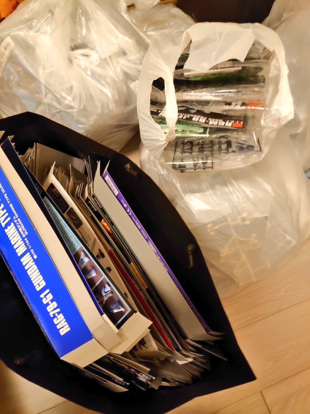 可以從照片看出,不少東西都是未組裝的山積鋼普拉,也被老婆拆開後一一將盒裝拆平後送出,雖然有些許從垃圾中救回,但多數收藏仍在尋求救援方法…。老婆是趁他與孩子出門時,把這些東西全部包一包做為垃圾丟掉,自己也很懊惱到底哪裡出了問題,老婆生氣成這樣到底是怎麼了 ?