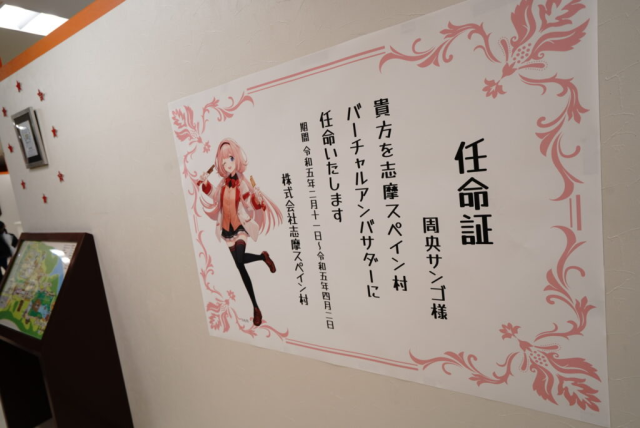 彩虹社的 VTuber 「周央珊瑚」其實也是目前志摩西班牙村的觀光大使,這也非常少見虛擬偶像來擔綱這個職位。其實會促成這個契機也是因為周央珊瑚才在直播中提到,自己非常喜愛到志摩西班牙村玩,甚至熱切的跟粉絲介紹該處的迷人之處,也就讓兩者有機會合作。