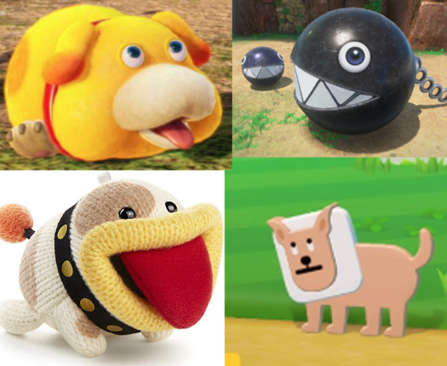 這次四張圖分別是;左上《皮克敏4》的宇宙犬、右上《瑪利歐系列》的汪汪、右下《瑪利歐 Maker 系列》アンドゥ犬以及左下《耀西島系列》的ポチ。這些角色看似多變化,但設定都是狗的一種,也難怪玩家覺得為何任天堂對「狗」的設計一直都難以理解。