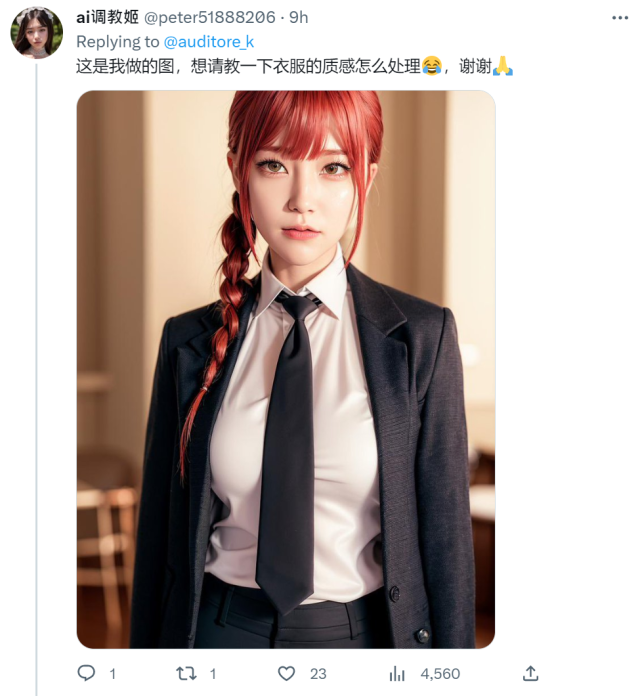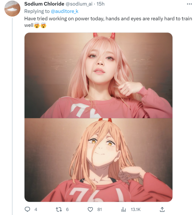 近一年來,AI 繪圖技術引起日本網友熱烈討論,從「midjourney」、「Stable Diffusion」到「NovelAI」,現在就算在 Pixiv 也可以看到用其作出的繪圖,也產生不少人們對於這種作品的問題,不過不容質疑的是,這些 AI 似乎成長速度越來越強大。最近推特網友貼出了由「midjourney」繪製出來的「寫實版《鏈鋸人》真紀真 」作品,發現畫出來的質感越來越逼真,甚至貼近真人的 Cosplay,再次引發話題。