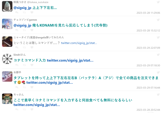 這則推特也受到不少網友關注,有人開玩笑表示要不要試著輸入看看著名的「KONAMI 密技」,說不定有機會免費吃到一盤壽司 ( ? )