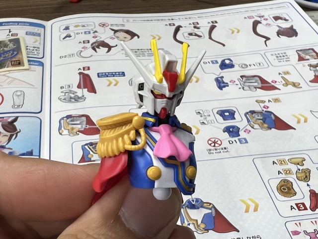 日本一名推主Kenji(@mark00ac)在組裝FRS帝王時發現,帝王的決勝服配色與鋼彈主角機的基本配色幾乎一樣,都為藍、白、紅、黃,於是他有了個大膽的想法…將「EG 攻擊鋼彈」的頭裝在帝王的身體上。