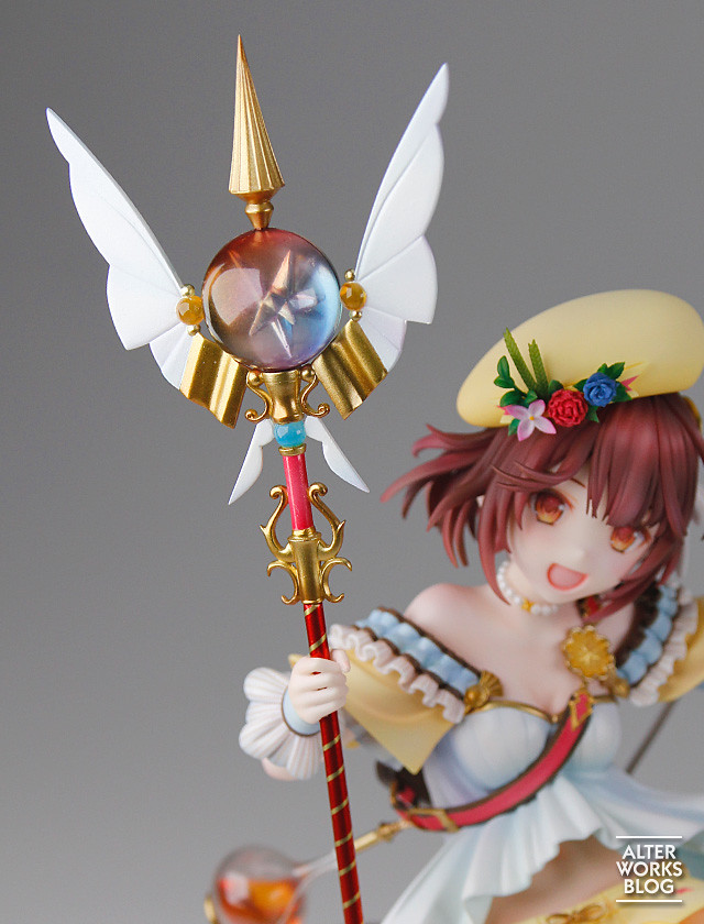 從裝飾花朵的貝雷帽、髮飾、珍珠項鍊、背包、藥水瓶到褲子上的刺繡,全都具備精緻造型,甚至再現藥水瓶中搖晃的液體。藉由多種材質、豐富的塗裝色彩表現各部位的質感差異。