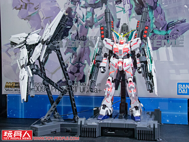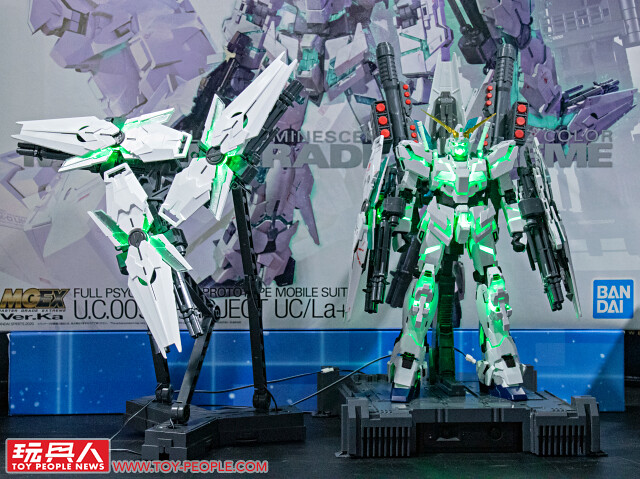 最後是 3000 元以上的選擇,Nine 直接端出超豪華的「MGEX RX-0 獨角獸鋼彈 Ver.Ka 1/100 比例組裝模型」,這種等級的商品絕對是跟超級好友或是另一半才捨得玩的吧!?現場我們仔細欣賞了本作的發光功能與三面感應盾合體,實在帥氣!