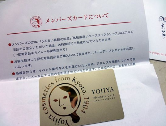 優佳雅的LOGO是鬼頭技藝,是1904年設立的老招牌化妝品美妝店,原先只是街口攤販,但越做規模愈發膨脹,目前不僅是京都特產代表的等級,甚至還推出咖啡廳等不同以往的多角化經營–就連金色會員卡都很別緻。