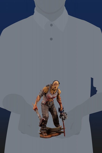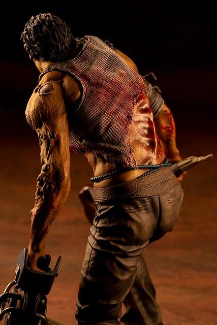 這款由壽屋所推出的電鋸殺手之立體人形,全高約有 22.5 公分,同樣經由著名原型師大畠雅人之巧手,完美還原其遊戲中的樣貌,臉上那張已經扭曲變形的表情、右手所持的大鐵鎚,以及裝置在左手那殘留鮮血的招牌電鋸,還有身上的破碎衣服與血跡等等,都藉由多樣化的塗裝方式逼真再現。限定購入特典為工具箱配件,搭配擺放更加生動。