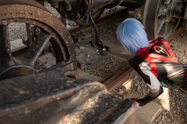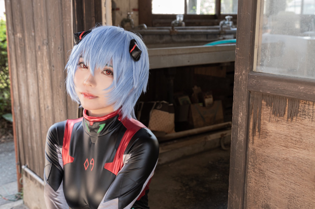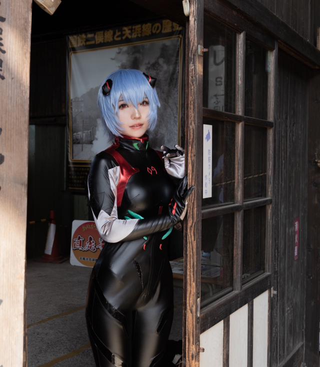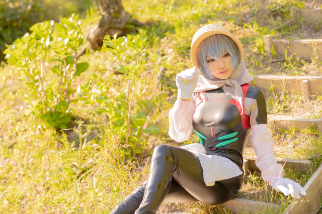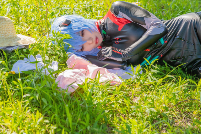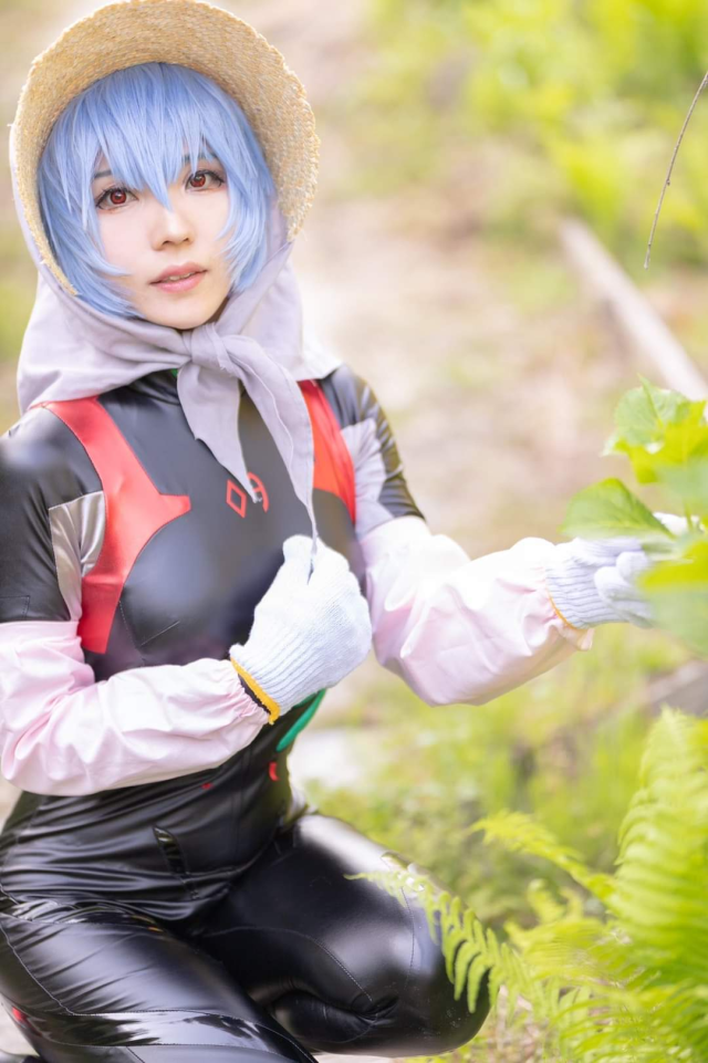 EMITASU 穿上 NERV 的黑色插入栓服,緊身的服裝讓身材線條完美呈現,還原綾波零的姣好身材。搭配本次劇場版中的務農造型,反而呈現出一種貼近自然的和諧感。