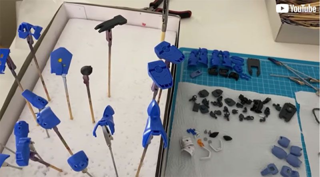 在組裝過程中動用了製作模型會用到的各種道具,砂紙、筆刀、剪鉗、模型塗料、模型膠等基本配備,而且在組裝過程中還會利用自己的小撇步讓一般模型會有的湯口、接合線給弄不見,成為一隻完美的鋼普拉。