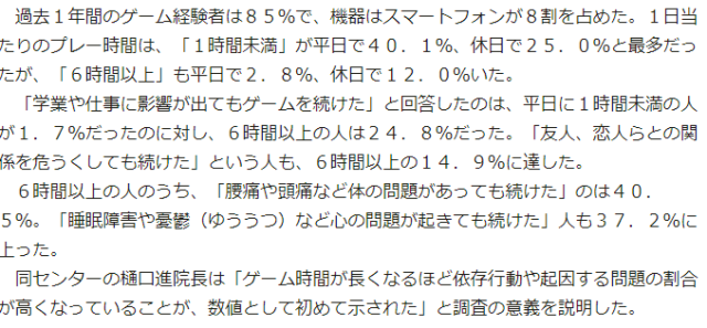 神奈川「遊戲沉迷」數據重溫:假日玩6小時很「嚴重」???