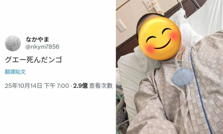 帳號為「なかやま(中山)」的網友,是一名就讀北海道大學的男大生,2023年10月被醫生診斷出罹患罕見癌症,自此接受多次化療手術。儘管過程相當辛苦,但なかやま以非常積極的正面態度,定期在社群媒體分享自己抗癌歷程,還會對自己狂開地獄哏,讓他的親朋好友與追蹤網友為此哭笑不得。