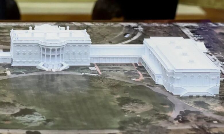 擬議興建的白宮大宴會廳(右)面積比白宮主建築還要大。(路透)