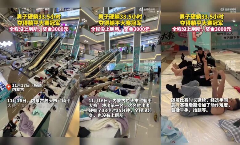 在內蒙古包頭市一場別開生面的「第三屆躺平大賽」中,出現令人咋舌的畫面,240名參賽者齊聚百貨公司床墊上展開「靜止對決」,最終一名男子以連續躺平33小時35分鐘的驚人紀錄奪冠,全程未起身如廁,硬是躺贏3000元獎金。