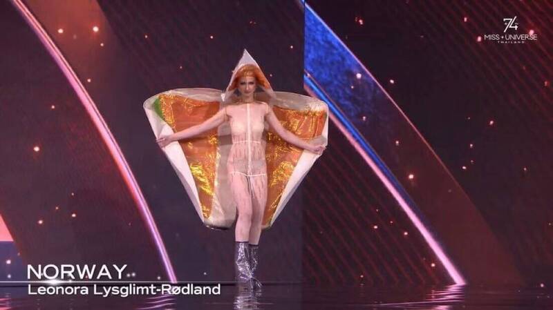 第74屆環球小姐(Miss Universe)決賽週五(21日)在泰國曼谷落幕,預賽時19歲的挪威小姐李奧諾拉.勒德蘭(Leonora Lysglimt-Rødland)憑著大膽又有戲劇性的「鮭魚」裝成功吸引全球目光,也迅速在社群媒體間走紅。