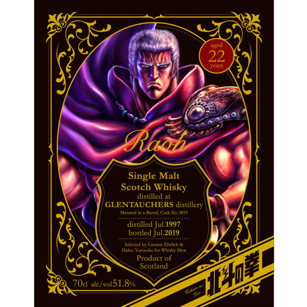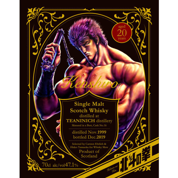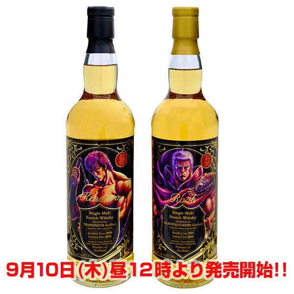 「 WHISKY MEW」是日本知名的威士忌品牌,主要銷售由威士忌收藏家山岡秀雄的鼻子和舌頭試味推薦的威士忌。近日發布與經典動漫作品《北斗神拳》合作的消息,推出「北斗神拳威士忌」,以拳四郎與拉歐兩款可供選擇,將於 2020 年 9 月 10 日開始預購。