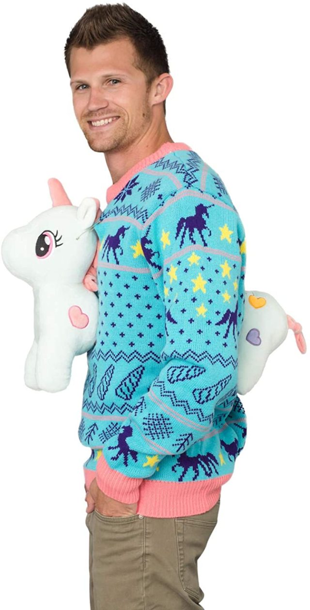 如果有人真的有興趣想要買這類的派對毛衣來玩,你可以在Amazon平台上搜尋關鍵字「Ugly Christmas Sweater」,基本上就能找到你想要的逗趣服飾,至少小編在經過搜尋後發現還有更奇葩的派對服裝,你必須承認這真的很好玩XD