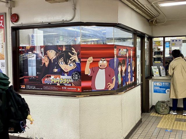 為宣傳即將在2021年4月16日上映的《名偵探柯南》的第24部劇場版《名偵探柯南:緋色的彈丸》,電影官方與日本愛知縣展開合作,並在名古屋鐵道犬山線江南站的站牌幾乎都被換成了柯南的圖樣,甚至連站名的部分都還被改成了「柯南站」,引起不少日本民眾的注意。