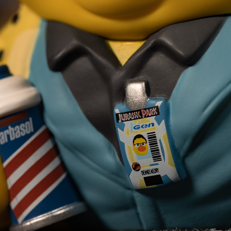 本次的「TUBBZ 約翰·哈蒙德博士/丹尼斯·納德利」黃色小鴨收藏,將神秘的恐龍博士與侏羅紀公園核心人物納德利以約 9 公分的尺寸中還原,在特徵的白鬍子、肥宅臉中融入小鴨的黃嘴與體型,附有浴缸造型的展示架,上面印製有「侏羅紀公園」的 LOGO 字樣。能夠在澡盆裡重溫侏羅紀公園的場景~