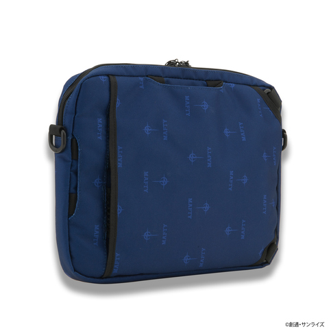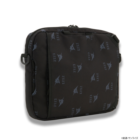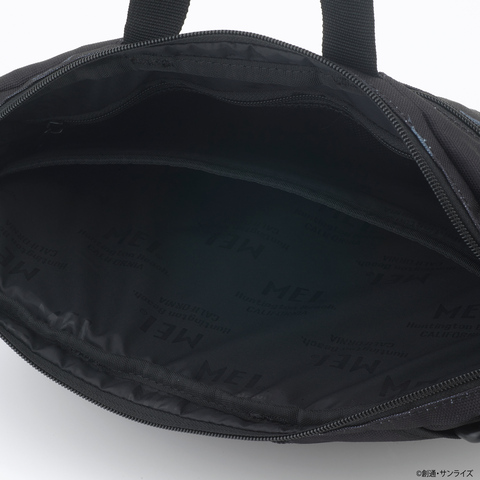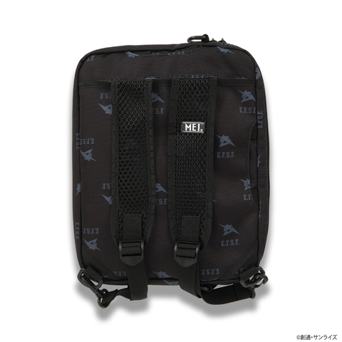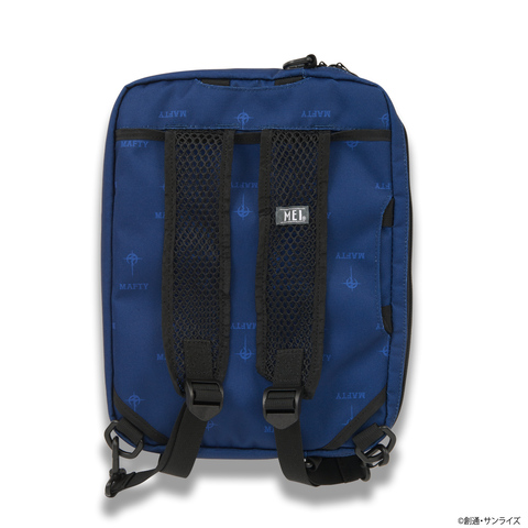 包包整體以黑色為基底,加入了地球聯邦的文字以及代表阿姆羅的獨角獸圖案,以滿版的方式呈現。包包可透過變化改為手提、側背與後背,容量上也可以負載 13 吋筆電及 A4 大小的書本。