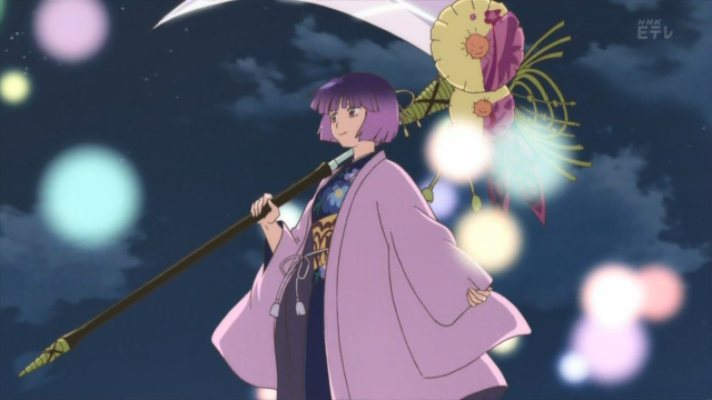 由日本漫畫家高橋留美子 2009 年創作的作品《境界之輪迴》,動畫版曾於 2015-17 三年間播出三季。六道乙女為白金級死神,主角六道輪迴的母親。紫色短髮是她的特徵,雖說是媽媽屬性但意外的讓人感到十分可愛 XD。