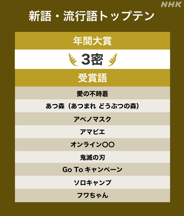 日本2020年度流行語大賞公布!「3密」擊敗鬼滅之刃與動物森友會成為大賞得主