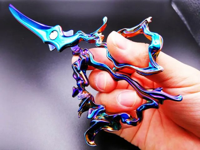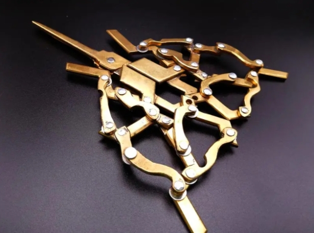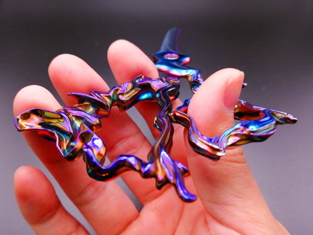 ▼「銳利艷毒的剪刀」,彷彿用液體做成的樣子,其實是使用了蒸鍍的方式,在金屬表面加上一層電鍍般的膜。